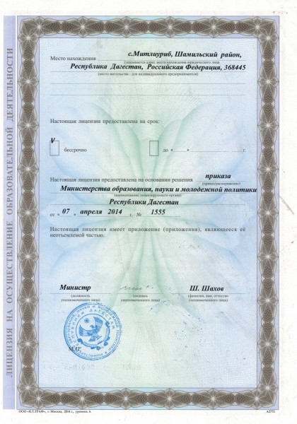 Адрес местонахождения образовательной организации* 368410 с. Митлиуриб, Шамильский р-н, республика Дагестан